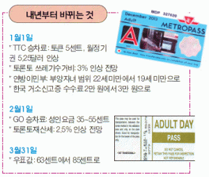 새해부터 바뀌는 것들 TTC, 전기료, 재산세, 이민허용자녀연령