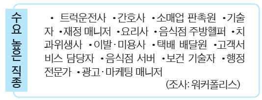 요리사, 트럭운전사, 전기·배관공 등 각종 기술자들도 비교적 쉽게 일자리를 찾을 수 있는 것으로 지적됐다.