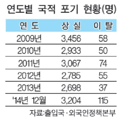 또한, 한국 장기체류나 여권 발급 등에 제재를 받게 되는 만큼 대상자들이 서둘러 국적이탈을 하고 있는 것으로 풀이된다.